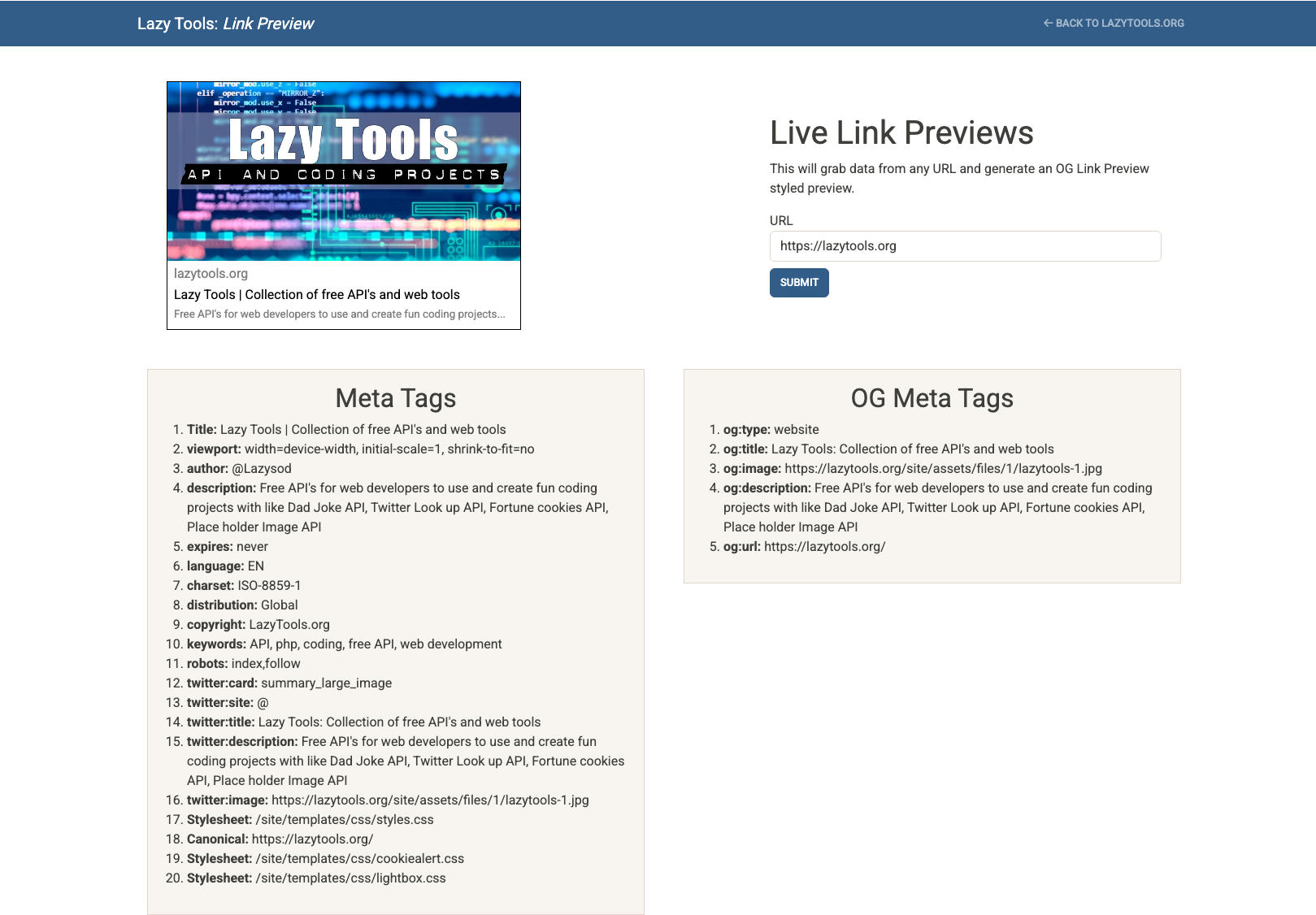 The idea of this tool is simply to grab thge meta tags being use on any given URL. When combnined with my SERP Checker it forms a powerful SEO tool set. The project was not without it's challenged and hurdles but some research soon put and end to that.